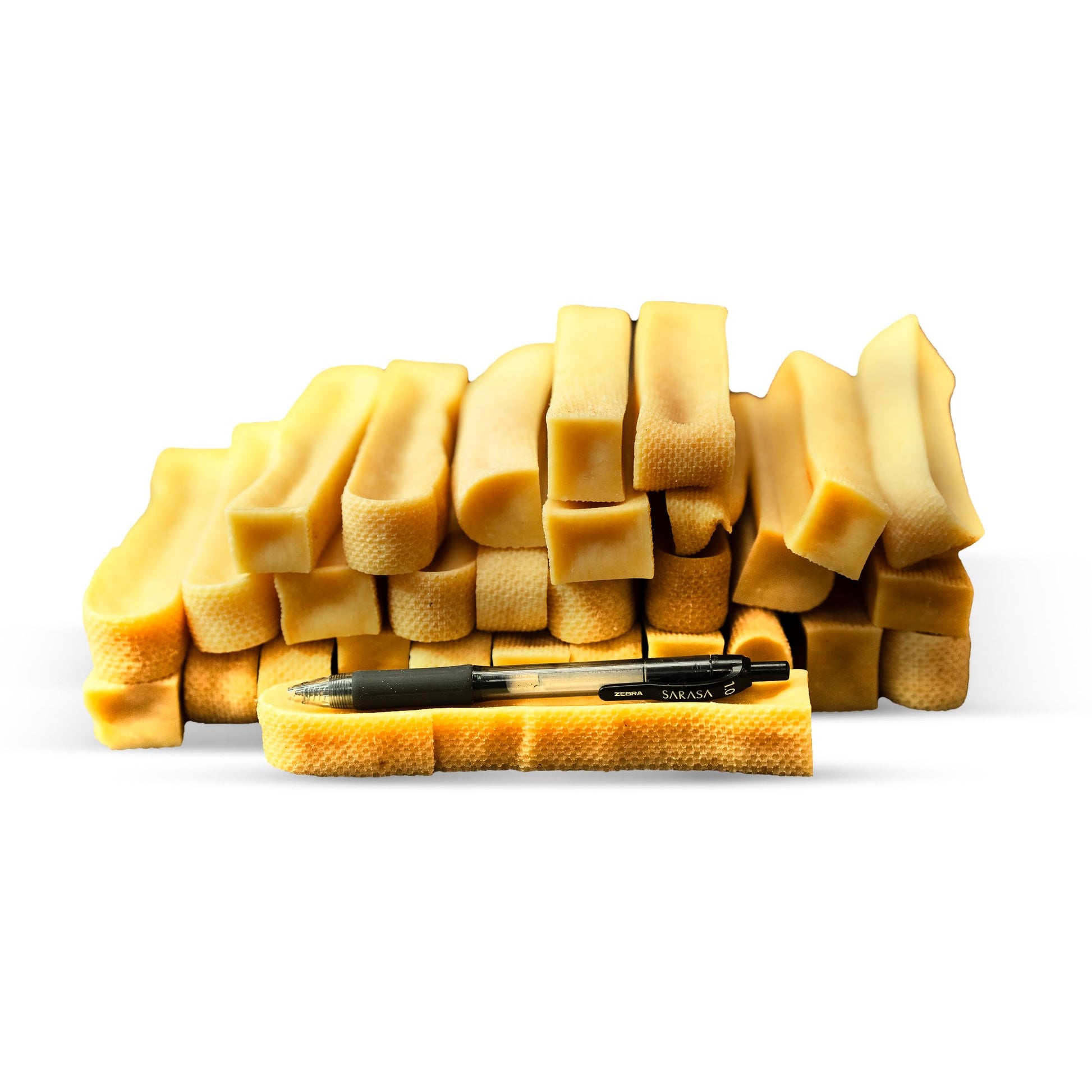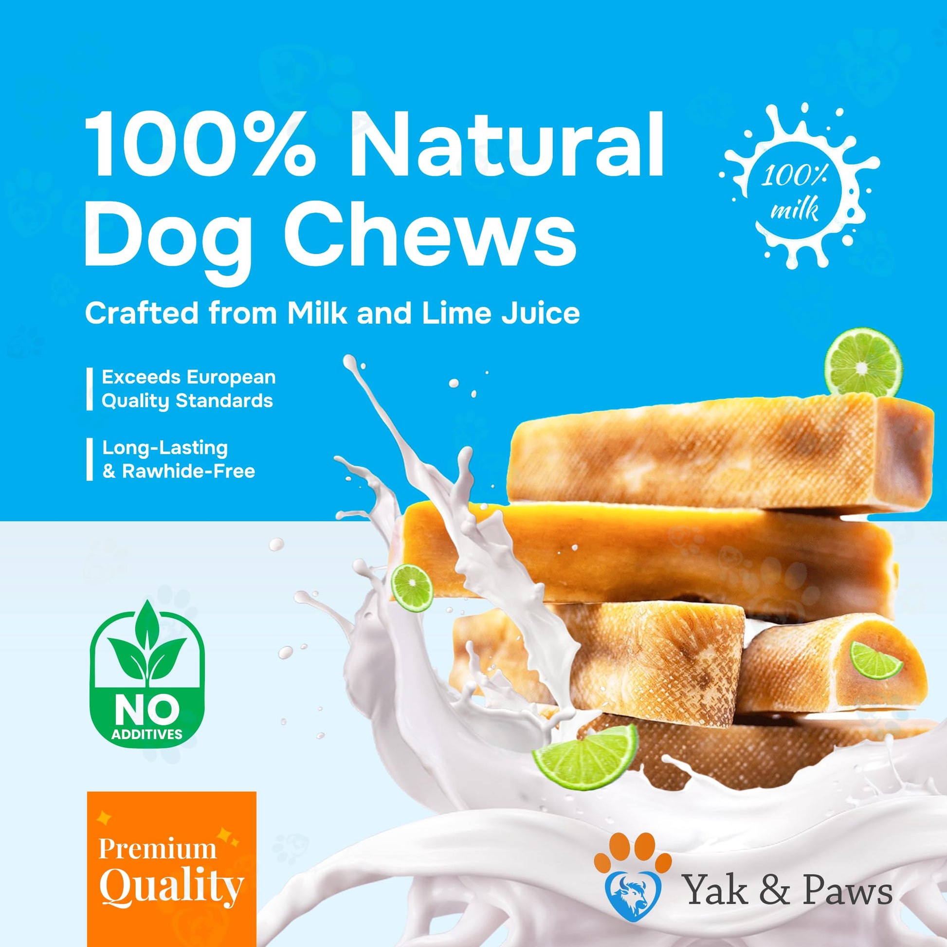 Details: Yak & Paws Hard Cheese Chews are meticulously crafted using pristine cow and yak milk with no preservatives. Following the ancient Himalayan recipe, our chews mirror the texture and quality of the original Yak Cheese Chews. Produced in advanced facilities, our chews meet high standards of excellence. They are consistent in shape, size, and color, ensuring a premium treat. Our chews are long-lasting. They are gluten and grain-free, offering healthier alternative to traditional chews and rawhides. 100% Natural, No Additives Long-Lasting, Odor-Free Sourced from Nepal/Germany Protein-Rich & Lactose-Free Safe (no splintering, digestible)