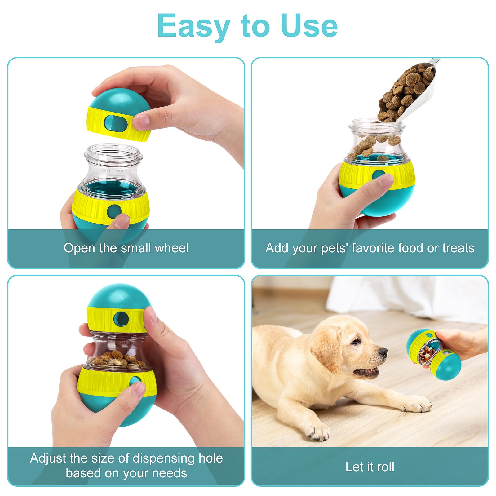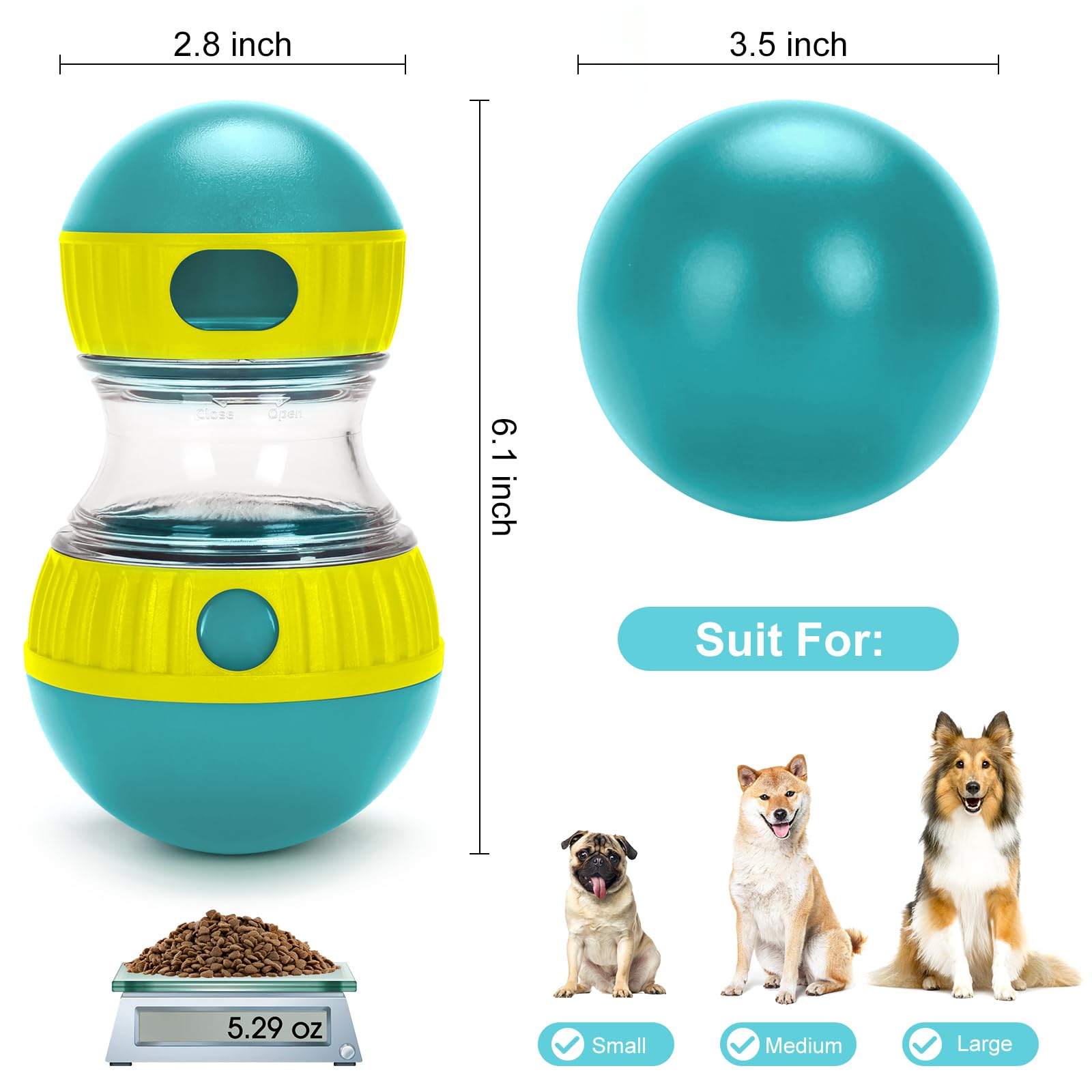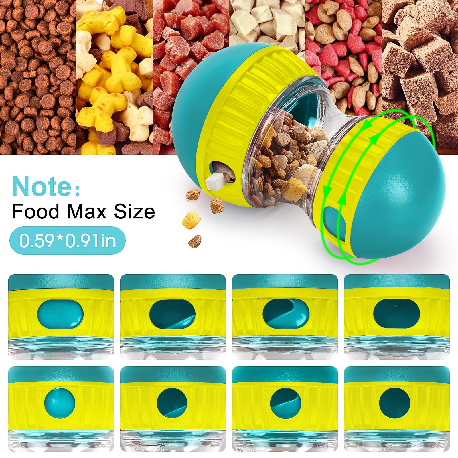 • Fit Most Kinds of Kibbles: The size of the holes to fall out food is adjustable based on your needs, you can fill in your fur friends favorite meals or snacks to make them interested, and the food will fall out smoothly without stuck while they playing it.