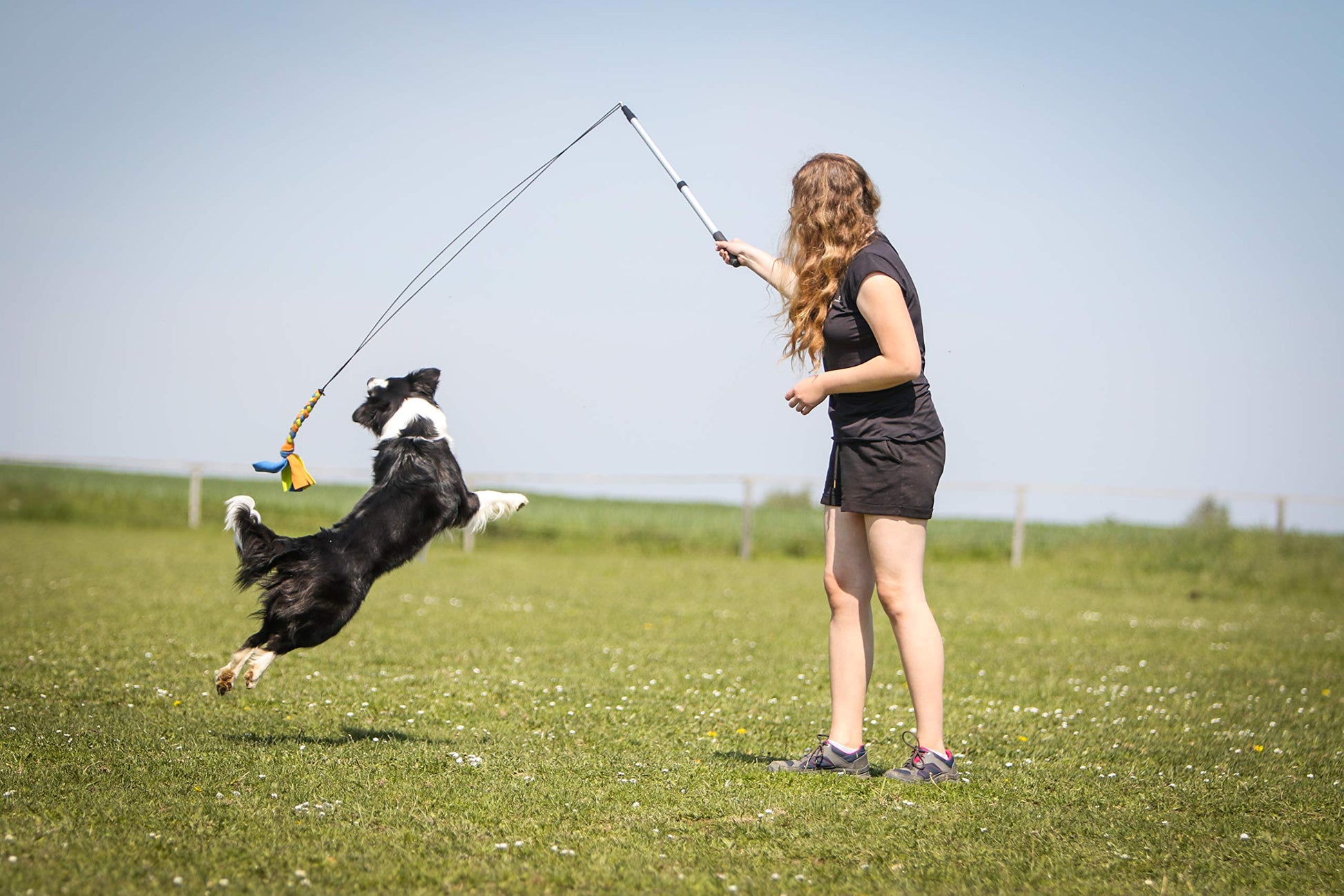 COMFORTABLE & SAFE - This dog training stick has a non-slip grip for easy handling; The strong NON-Bungee cord won’t snap back to you or your dog when he/she is chewing and pulling the toy and you try to push out the toy from the dog’s mouth; Beware of flirt poles with bungee cords that may cause very serious injury to your dog!
