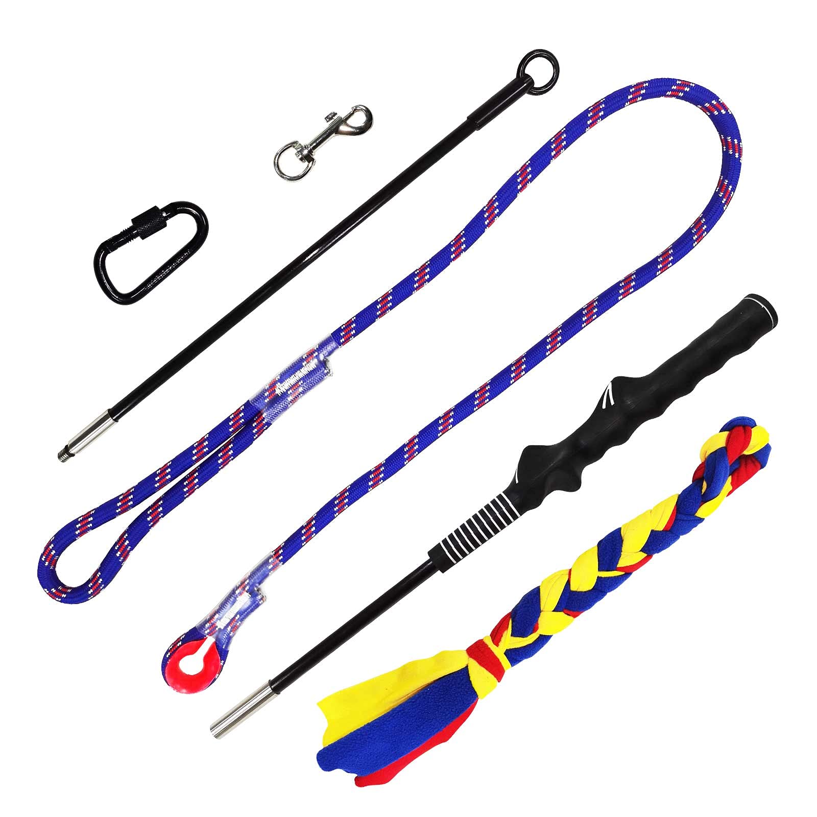 🐕| PREMIUM MATERIALS | The training stick is made of 304 stainless steel,the holder is long and very sturdy. The cord is made of high quality nylon,it's strong and durability.It can bear the pulling and tugging force from dogs.The tether toy is handmade fleece,which it's soft,light and safe for pet.