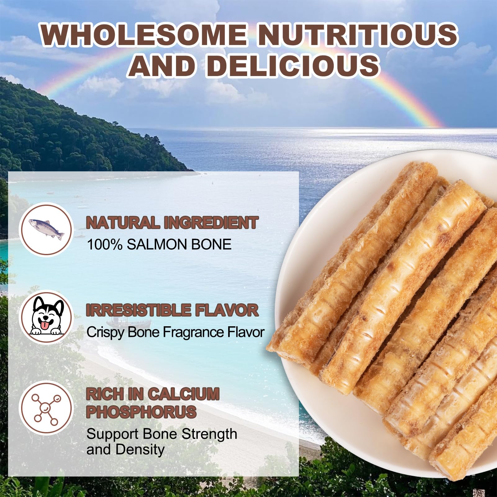 - STRENGTHEN BONES SUPPORT JOINT HEALTH : Salmon bone dog chew sticks are rich in natural calcium and chondroitin, which helps strengthen bones and support joint health, and are suitable for cats and dogs of all ages