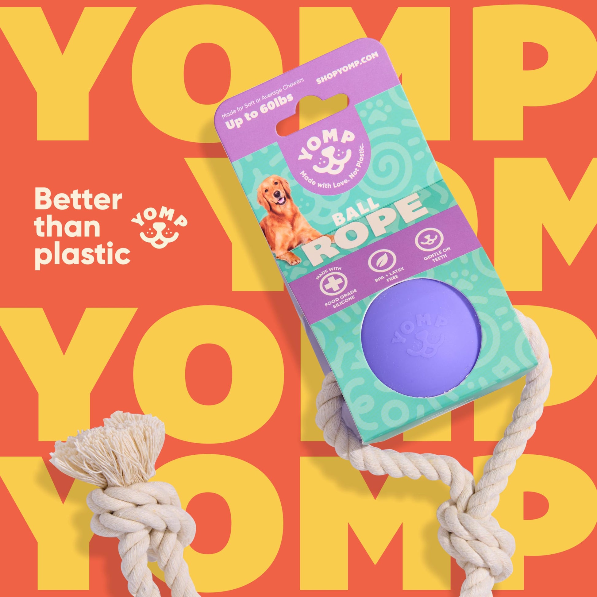 Yomp BallRope Ball on a Rope Dog Toy – Interactive Tug of War Toy for Soft and Medium Chewers, Teething Puppy Ball – Made from Pet-Safe, Non-Toxic Silicone