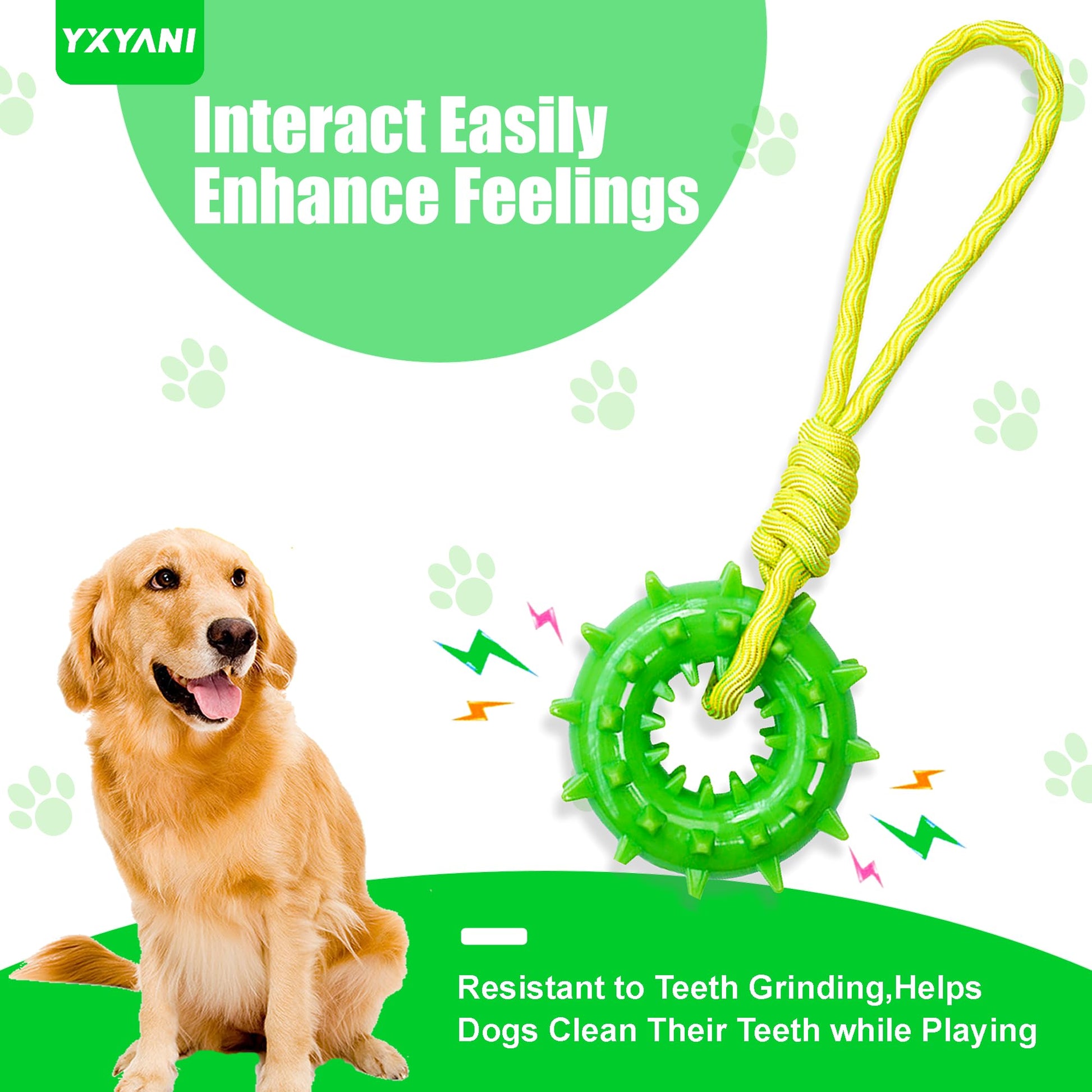 【INTERACTIVE TUG & FETCH TOY – KEEP DOGS ACTIVE】 This interactive tug toy features a sturdy rope handle, making it perfect for tug-of-war, fetch, and solo play. Keeps your dog active and entertained, preventing boredom and destructive behavior, while promoting healthy exercise indoors and outdoors