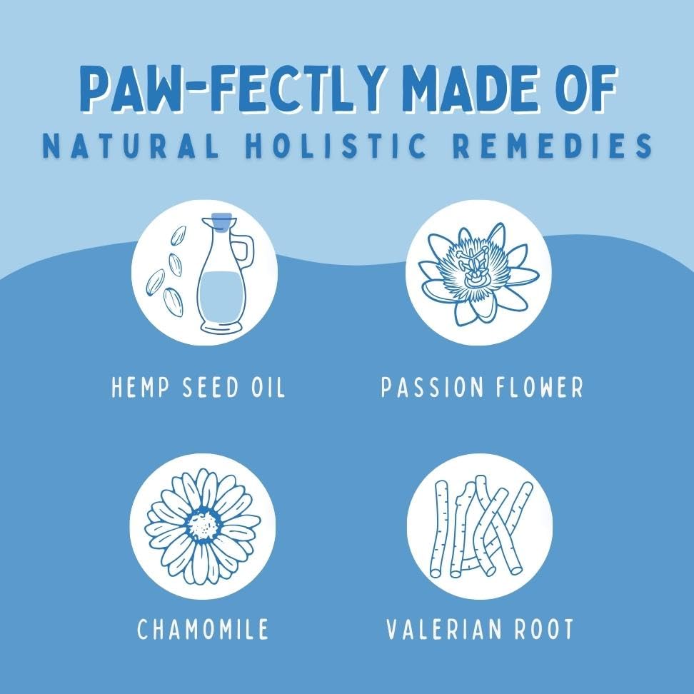 Stress Relief: Calming relief treats perfect for dogs and cats providing calming effects through Organic Passion Flower, Chamomile Powder, Valerian Root and other All-Natural Organic Calming ingredients.