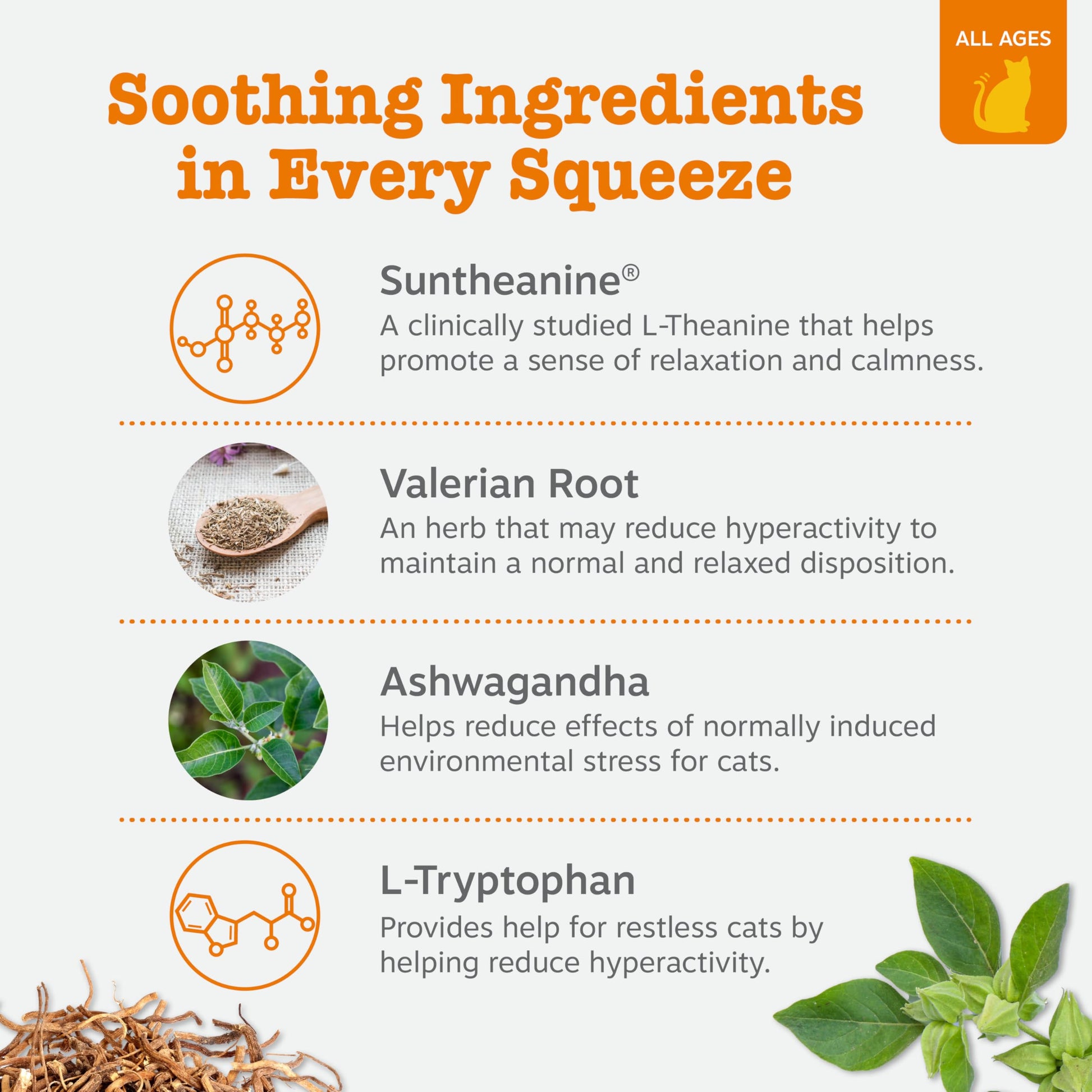 Support for Stress & Hyperactivity - Ready for some relief? Help your hyper nervous pet relax and feel calmer during tough moments with the Ashwagandha and L-Tryptophan in this squeezer formula