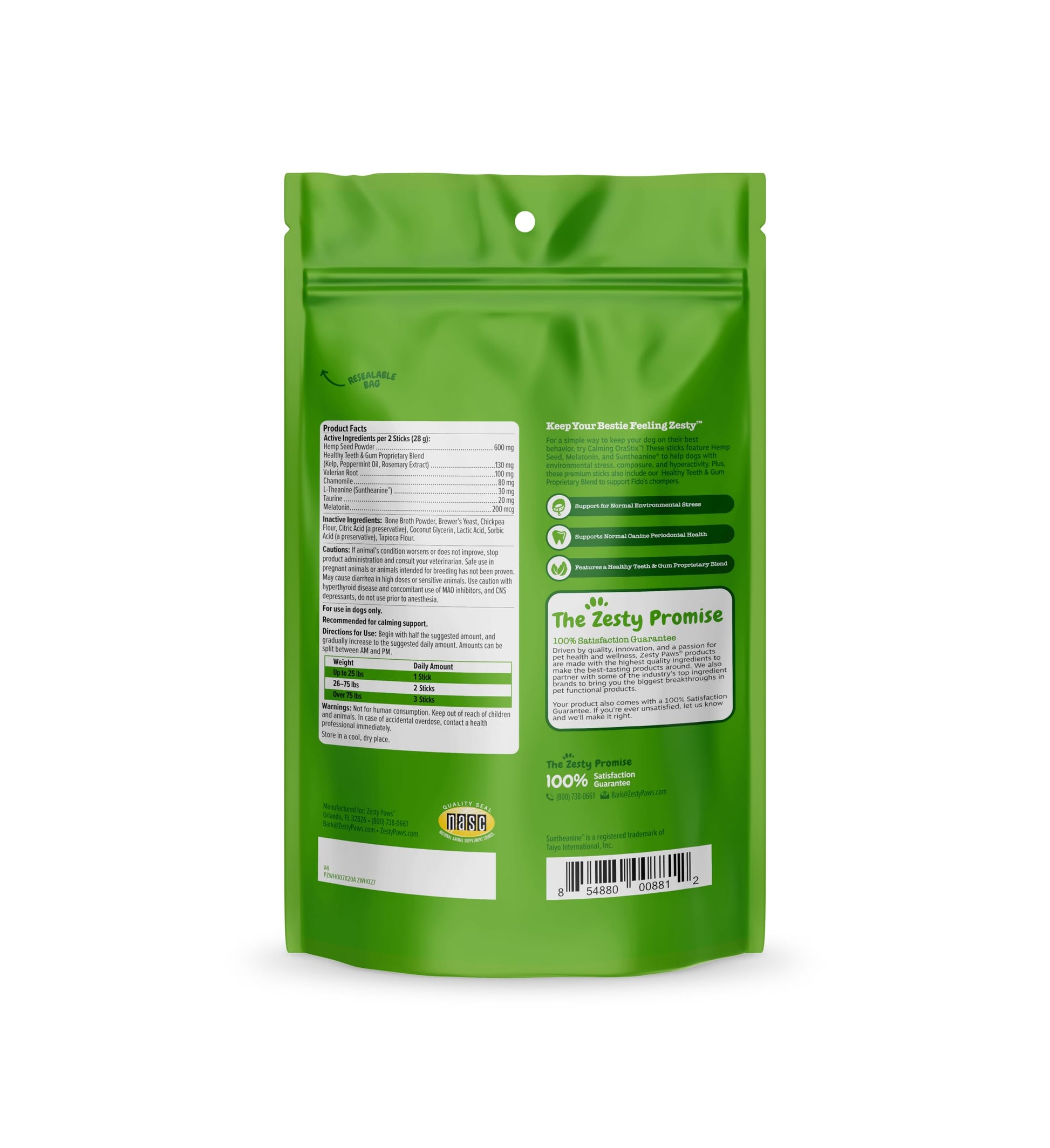 • Support Fido's Normal Stress – Zesty Paws Calming OraStix are premium dog sticks with ingredients that help nervous, tense, or hyperactive dogs stay calm and relaxed.