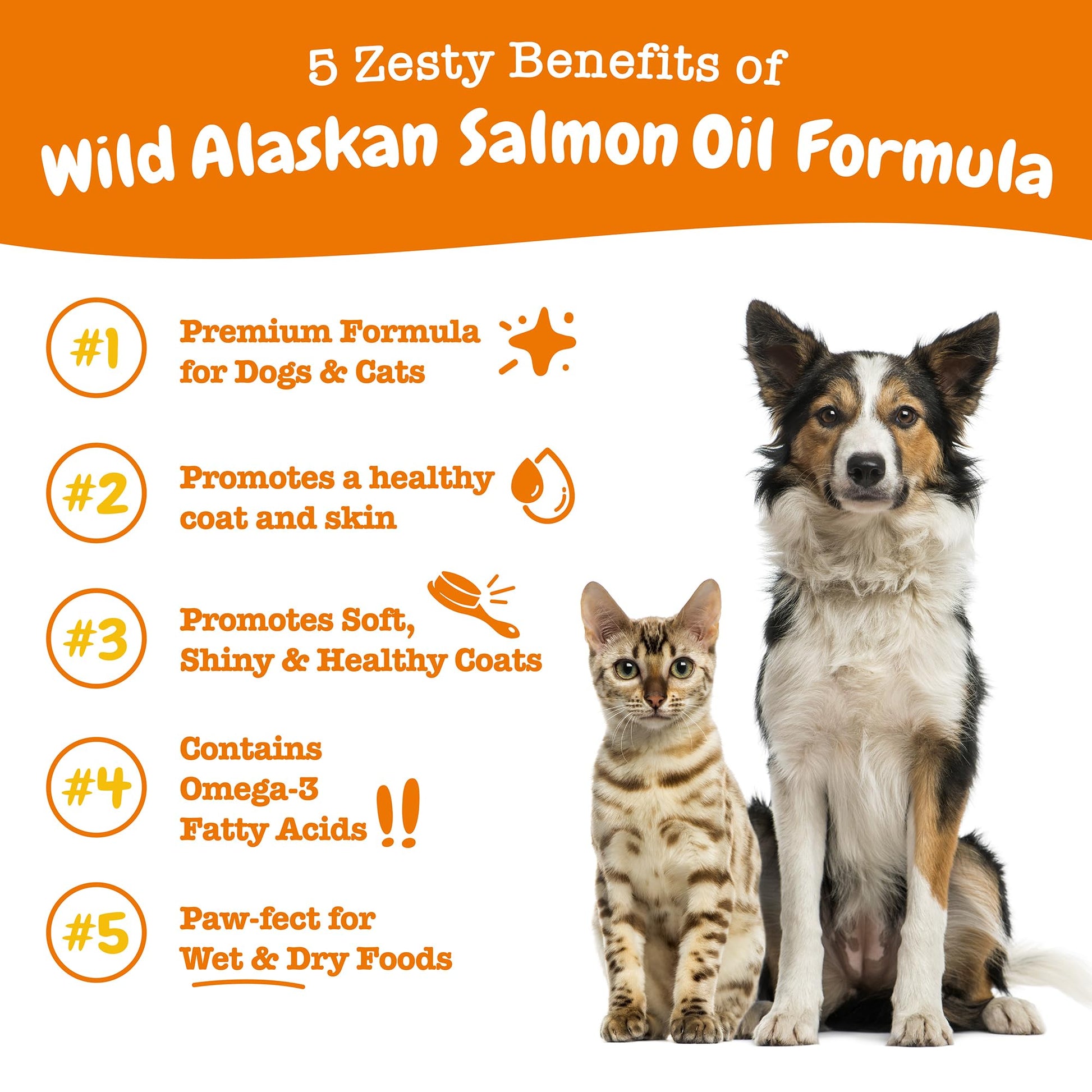 - SKIN & COAT NOURISHMENT: Fish oil for dogs and cat like Wild Alaskan Salmon Oil provides omega-3 fatty acids, helping maintain a shiny coat and nourished skin