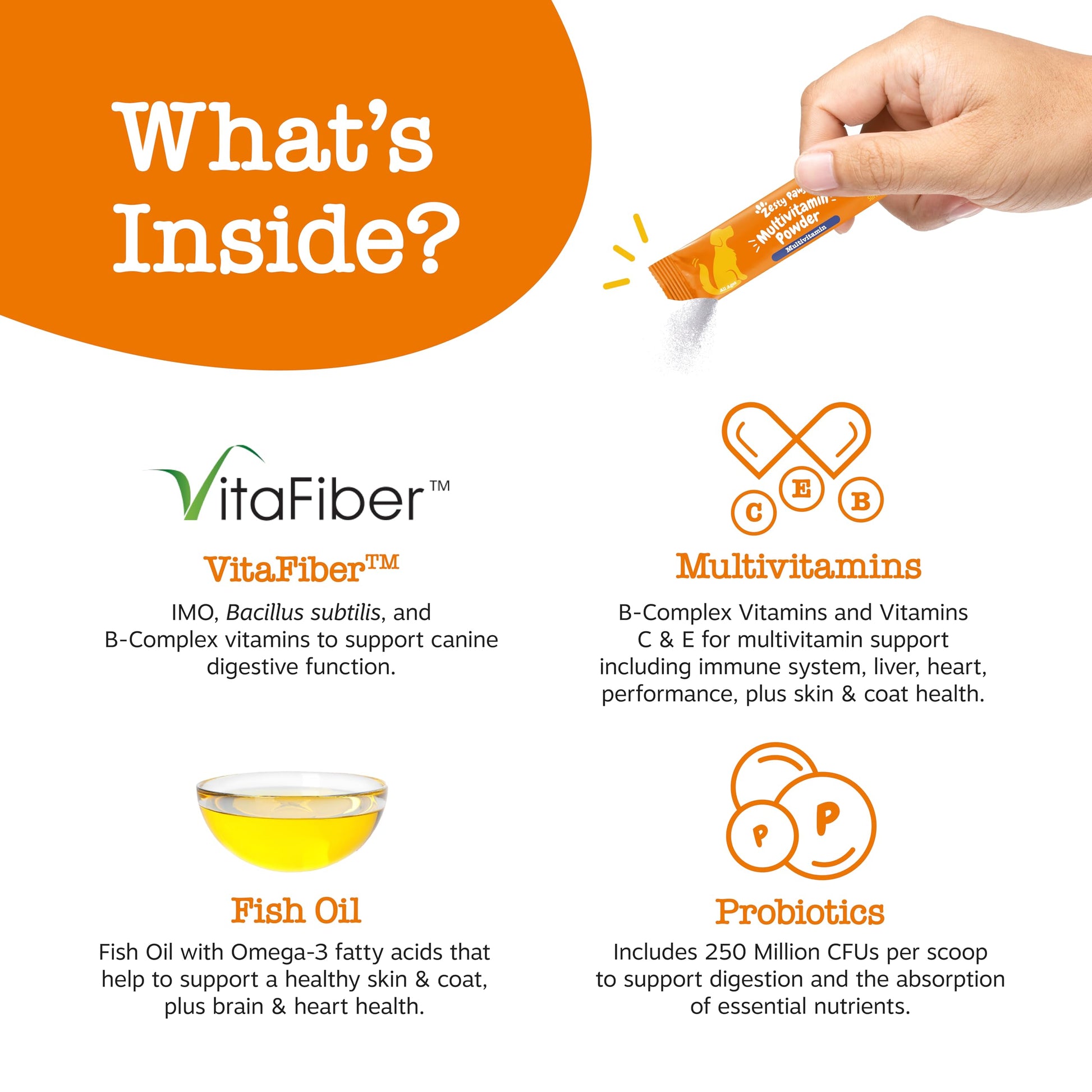 - Benefits Your Canine Will Love - These multivitamin for dogs powder supplements support digestion, immune system, bones, hip and joint, skin & coat, heart, brain, liver, kidney health, performance, and antioxidant levels.