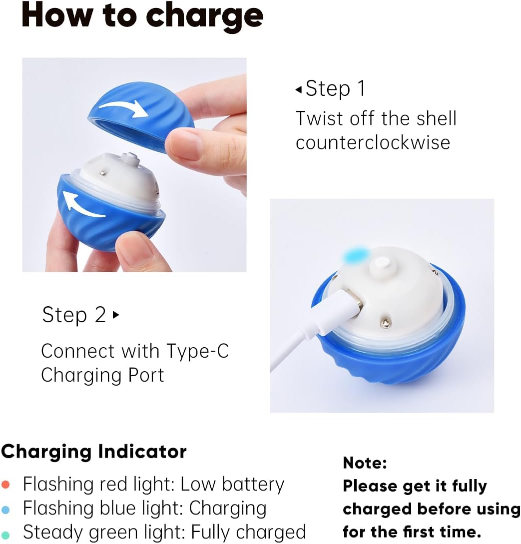 • Rechargeable and Safe for Daily Use: Equipped with a Type-C port, this interactive dog toys fully charges in just 1.5 hours and provides up to 3 hours of continuous use. LED lights indicate battery status. No need to replace batteries—just charge and play again